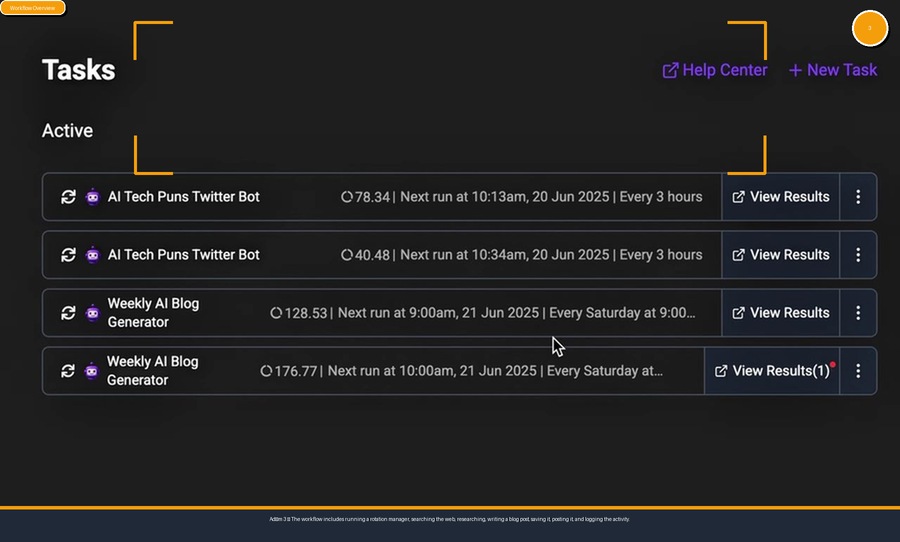 Eğer birden fazla projeniz veya otomasyon göreviniz varsa, bunları yönetmek karmaşıklaşabilir. DeepAgent, bu sorunu da şık bir görev yönetimi paneliyle çözüyor. Bu panelde, aktif olan tüm görevlerinizi bir arada görebilirsiniz.