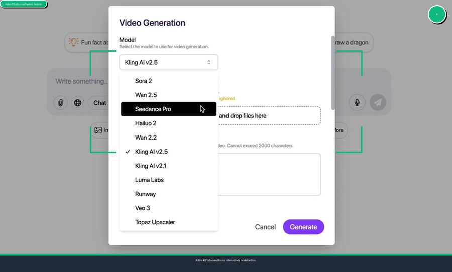 Ekran görüntüsünde de gördüğümüz gibi, platform size farklı "Video Generation Model" seçenekleri sunuyor. Bu, tek bir fırçayla her türden resmi yapmaya çalışmak yerine, her resim için doğru fırçayı seçmek gibi. Bu modeller, yapay zekanın videonuzu oluştururken kullanacağı temel "beyni" veya "sanatsal stili" temsil eder.