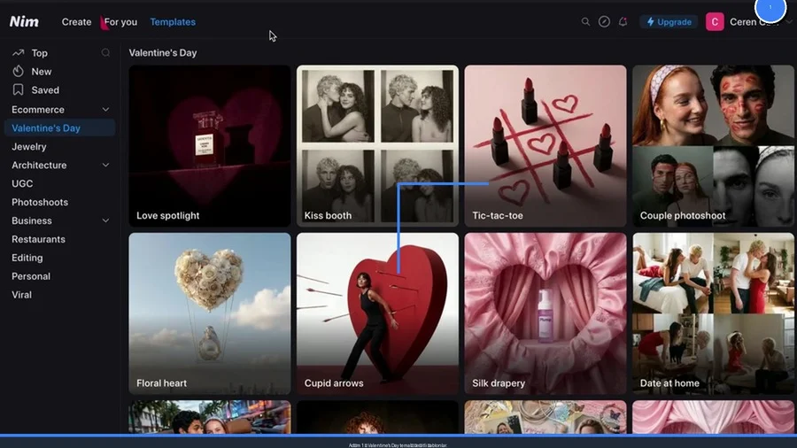 İncelediğim videoda, platformun ana sayfasında doğrudan "Valentine's Day" (Sevgililer Günü) temalı şablonların öne çıkarıldığını görüyoruz. Bu, aracın ne kadar güncel ve pazarlama odaklı olduğunun en büyük kanıtı. E-ticaret siteniz için bir indirim kampanyası mı planlıyorsunuz? Ya da Instagram hesabınızda takipçilerinizin Sevgililer Günü'nü kutlayacak şık bir gönderi mi hazırlamak istiyorsunuz? İşte burada, farklı konseptlerde, renk paletlerinde ve stillerde onlarca hazır başlangıç noktası sizi bekliyor. Bu şablonlar, boş bir sayfaya bakıp nereden başlayacağını bilememe sorununu tamamen ortadan kaldırıyor.