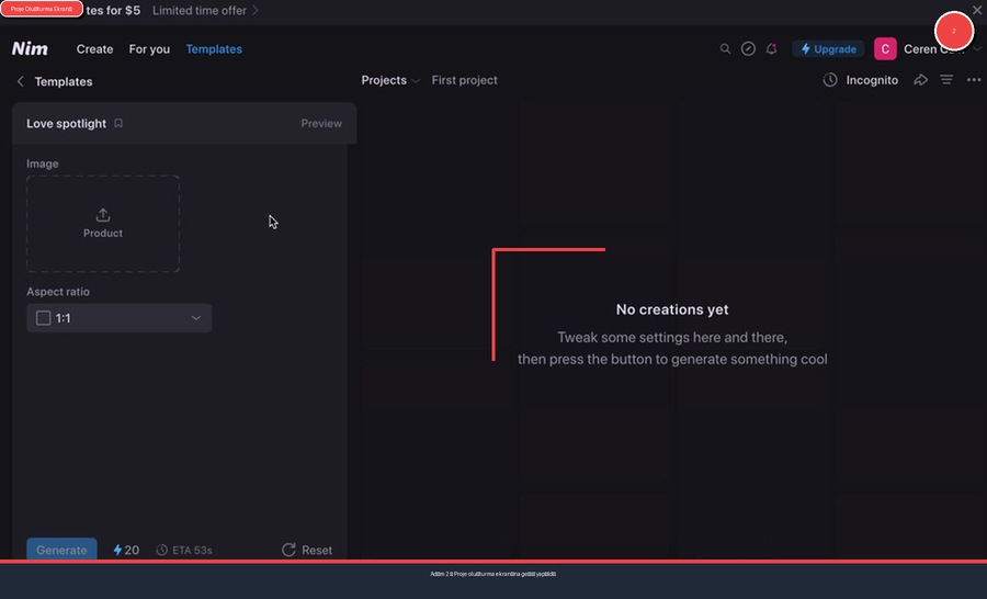 Beğendiğiniz bir şablonu seçtiğiniz an, sihir başlıyor. Araç sizi proje oluşturma ekranına yönlendiriyor. Burası, seçtiğiniz şablonu kendi markanıza, mesajınıza ve tarzınıza göre özelleştireceğiniz yaratıcılık merkeziniz.